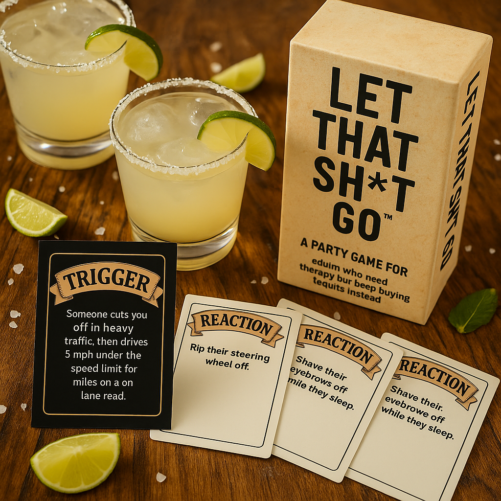 We all lose it sometimes. Over traffic, texts, parents, exes, Wi-Fi… the list goes on. Let That Sh*t Go helps you laugh at those moments instead of losing your mind over them. Behind the humor, every card is secretly inspired by real mindfulness techniques from classics like Letting Go by David R Hawkins and The Power of Now by Eckhart Tolle. You’ll find yourself calming down, breathing deeper, and realizing...maybe you really can let go. It’s the party game for people who are one minor inconvenience away from an emotional breakdown… and ready to laugh about it. Play, laugh, release, repeat. Let That Sh*t Go™ Laugh Hard. Let Go. Repeat.“Cheaper than therapy. Better than tequila.”— Probably BuzzFeed